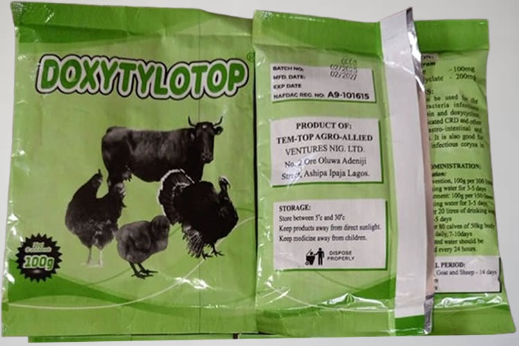 Doxytylotop is a good combination of doxycycline and tylosin for poultry and for other livestock usage. Doxytylotop has bacteriostatic activity against many gram-negative and gram –positive bacterial. Doxytylotop is recommended for the prevention and treatment of stubborn bacterial diseases like complicated chronic respiratory diseases and infections coryza diseases in poultry and other livestocks.