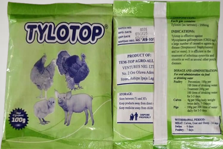 Tylotop can be administered via drinking water or feed, following the dosage recommendations provided. For optimal results, consult a veterinarian for tailored treatment protocols based on flock health conditions.