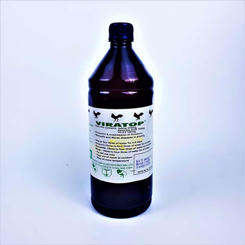 Viratop is an iodine-based broad-spectrum antiviral solution designed for poultry. When appropriately diluted, it can be administered through drinking water to prevent and suppress viral infections such as Gumboro and Newcastle disease.